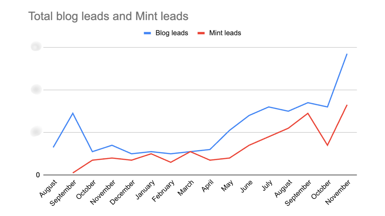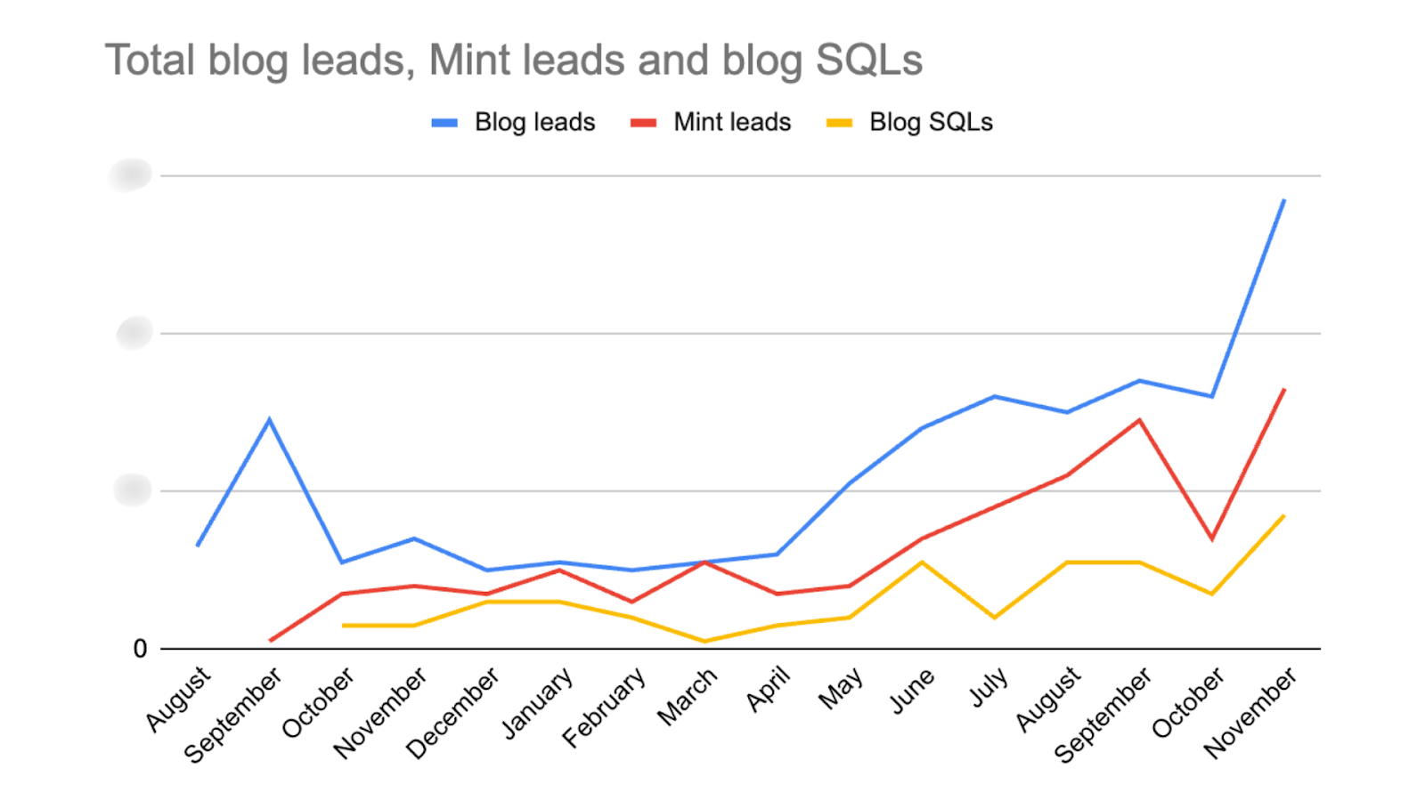SQLs via the blog grew by 466%, and of all Mint leads, 38% were SQLs / converted
