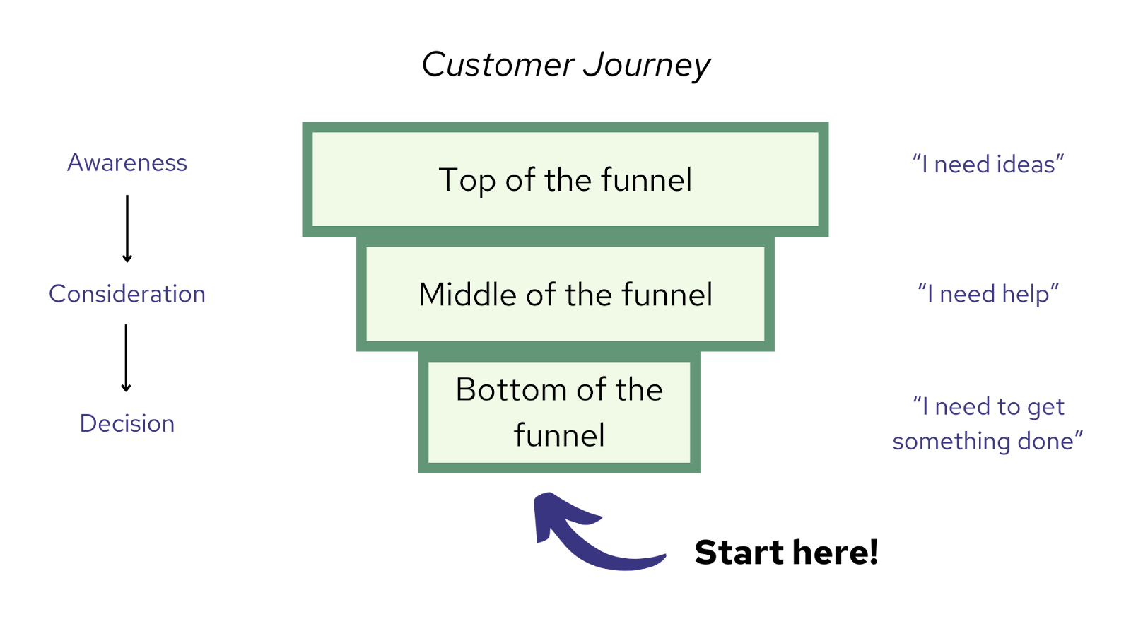 That’s the approach we took to come up with our list of buying keywords, which not only were more technical keywords, but they also had a “Bottom of the Funnel” focus. In other words, people searching them are more likely to convert. This is the foundational thesis that supports our strategy: start with the Bottom of the Funnel and work your way up.