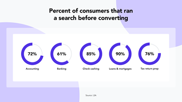 1. More than 50% of consumers run a search before becoming a financial services customers